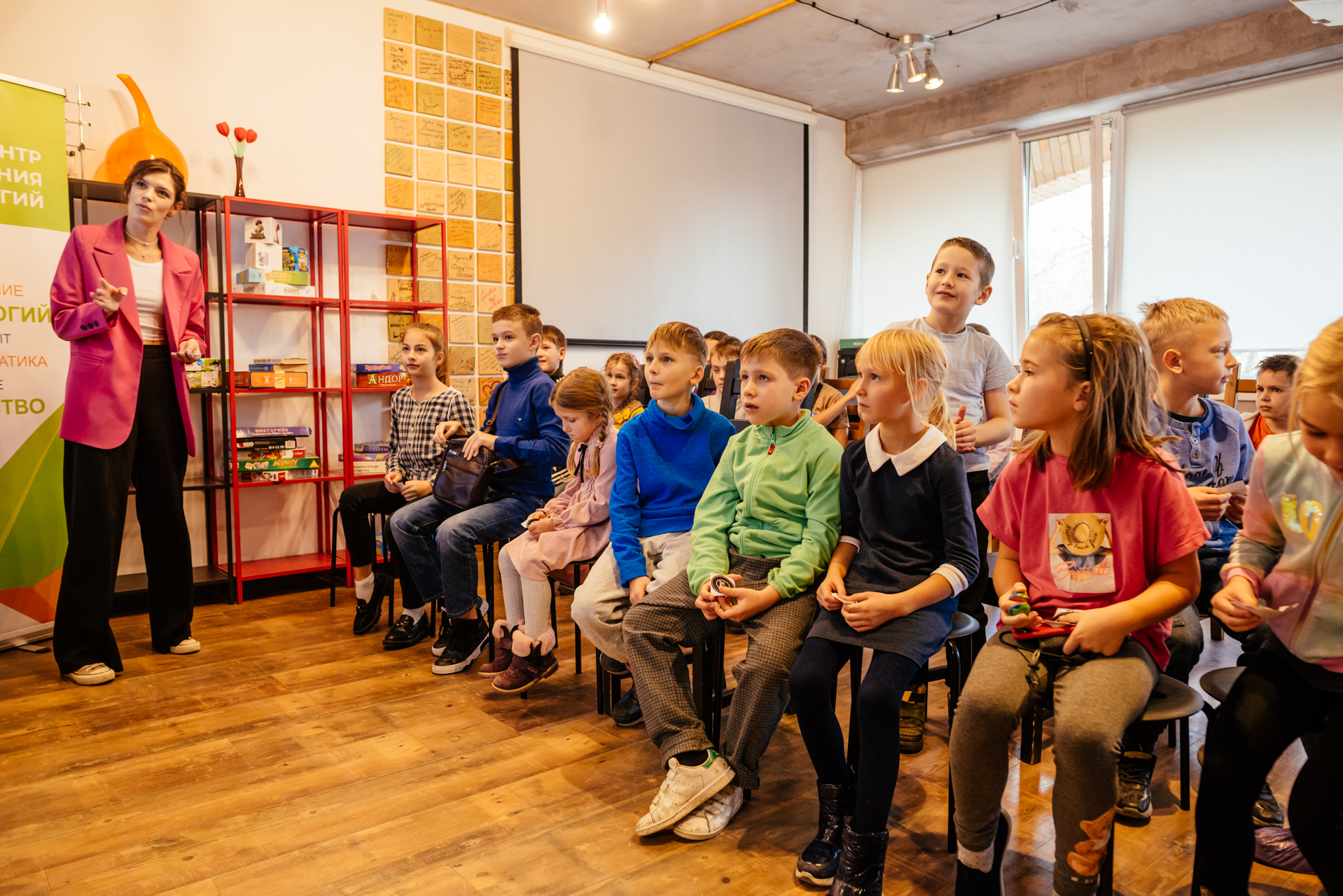 IT-коворкинга. Когда-то он пришёл сюда с идеей возрождения клуба «Что? Где? Когда?», затея реализовалась, клуб собирается каждый четверг, а Ваня рад помогать и в других делах… Вопросы простые, почти шуточные. «Какая самая главная наука, первая буква «Ф»?» – «Физика!» «Верно… а самая медленная наука?» – «Физра!» «Нет, физра не наука». – «Фотография?» – «Тоже нет». Поток идей иссякает… «Философия!» – наконец звучит правильный ответ. За каждый успех «знатоки» получают наклейки, которые потом можно обменять на блокноты, шопперы или брелоки. «Я уже получила свой приз, – Дарья Лобанова демонстрирует чёрную тканевую сумку для покупок. – Ответила на четыре вопроса и заработала наклейки. Было сложно, но я вспомнила ответы, например, про Солнце читала в энциклопедии». Много наклеек и у Тимофея Морозова. «Я просто очень люблю про Илона Маска смотреть! – отвечает мальчик. – Мама говорит, чтобы я на него равнялся».