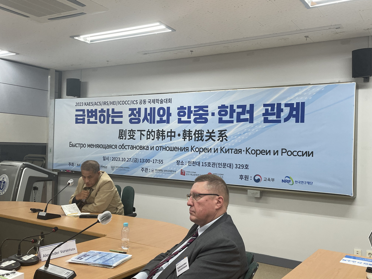 Заведующий отделом Кореи и Монголии Института востоковедения РАН А.В. Воронцов в период с 25 октября по 1-е ноября 2023 года находился в научной командировке в Республике Корея, где принял участие в международной конференции «Корейско-китайские и корейско-российские отношения в условиях быстро изменяющейся обстановки», организованной совместно Академией китаеведения Инчхонского государственного университета, Евразийским институтом университета Хансин и Институтом по изучению России университета иностранных языков Хангук, состоявшейся 27-го октября 2023 г. в университете г. Инчхон.