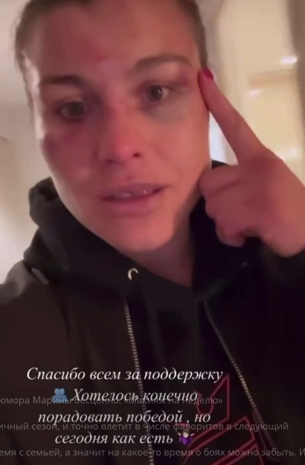 Российский боец смешанных единоборств Марина Мохнаткина (Спивак) после поражения от бразильянки Лариссы Пачеко в титульном бою турнира по смешанным единоборствам PFL World Championship опубликовала видео в социальных сетях, на котором поблагодарила поклонников за поддержку, а также проявила чувство юмора по отношению к своему внешнему виду после поединка, сообщает со ссылкой на Чемпионат.