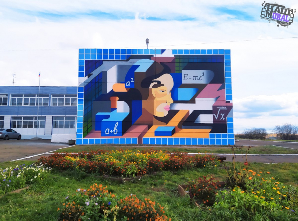 Фасад Куликовской школы в поселке Северном Нагайбакского района теперь похож на обложку советского учебника по математике. По крайней мере, именно им вдохновлялся челябинский художник Алексей Батис, выполняя мурал в абстрактном стиле.