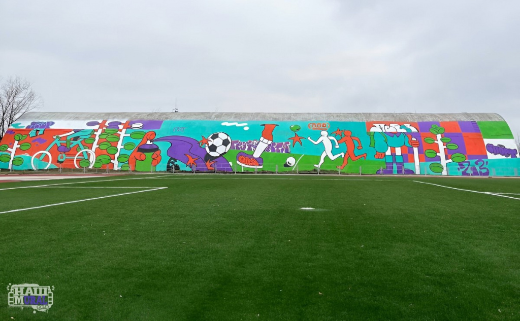А для создания самого большого мурала фестиваля в селе Кизильском понадобилось уже 500 баллонов с краской. Результат — яркий рисунок на стадионе местной школы. Автор мурала Евгений Ганг постарался вложить в работу свою любовь к спорту, граффити и путешествиям, чтобы вдохновить школьников на новые свершения.
