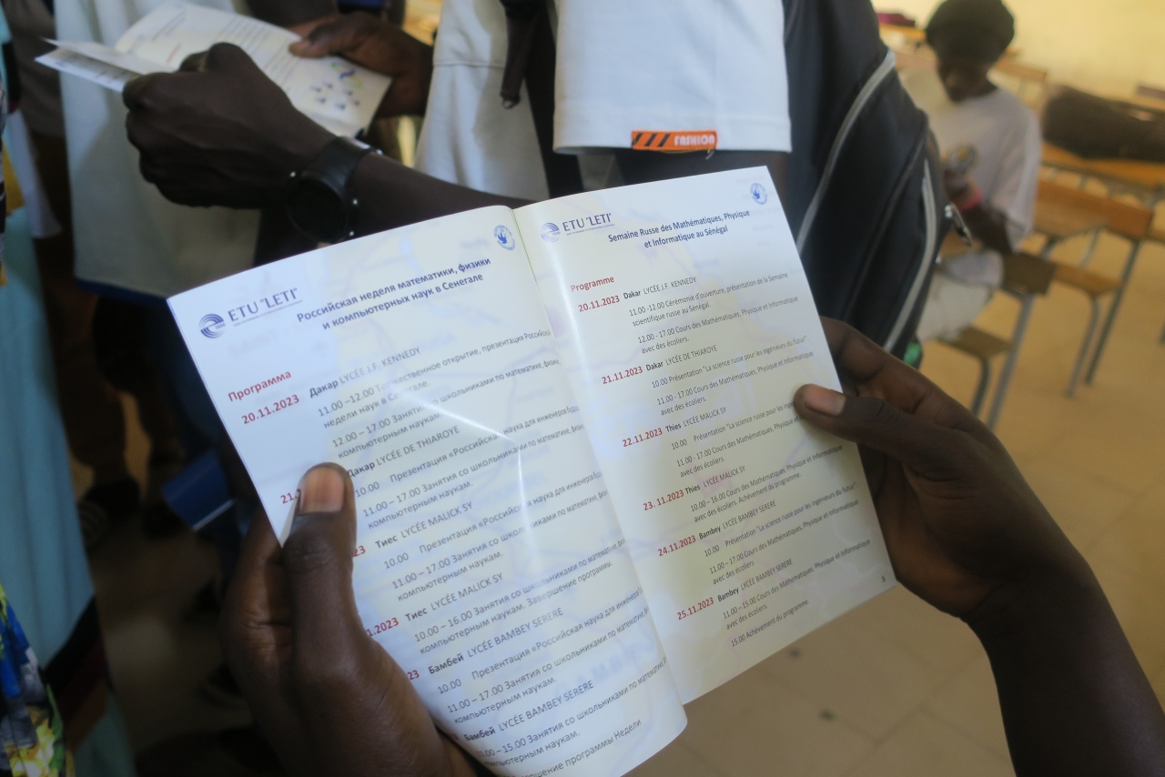 С 20 по 25 ноября на площадках ведущих лицеев Дакара, Тиеса и Бамбея проходили занятия по математике, физике и компьютерным наукам для сенегальских старшеклассников, изучающих русский язык. Учебную программу выполнили преподаватели Санкт-Петербургского государственного электротехнического университета «ЛЭТИ».