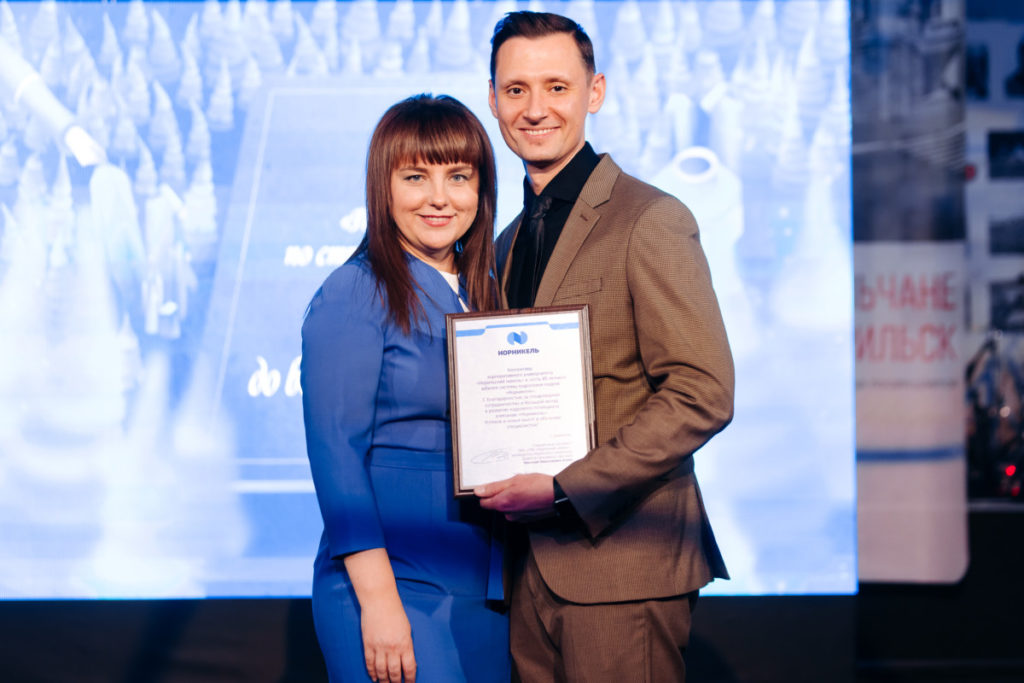 «Коллективу корпоративного университета в честь 85-летия системы подготовки кадров «Норникеля» с благодарностью за плодотворное сотрудничество и большой вклад в развитие кадрового потенциала. Успехов и новых высот в обучении специалистов».