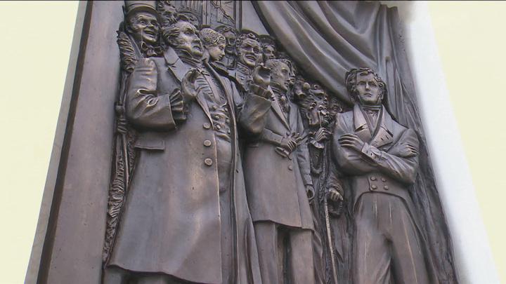Сегодня на фасаде особняка Барышникова в Москве торжественно открыли мемориальную доску, посвященную комедии Александра Грибоедова "Горе от ума".