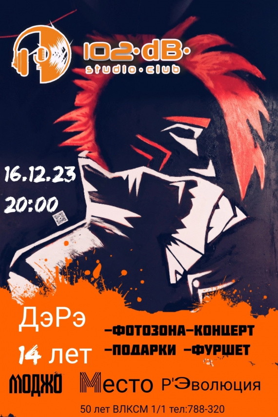 Место проведения: бар «102dB», улица 50 лет ВЛКСМ, 1/1. Время: 20:00