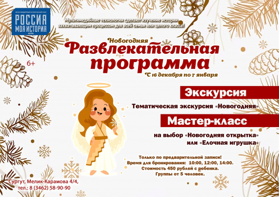 Приходите всей семьей или классом, чтобы сделать открытку или елочную игрушку, а также послушать тематическую экскурсию про Новый год в России! Посещение по предварительной записи.
