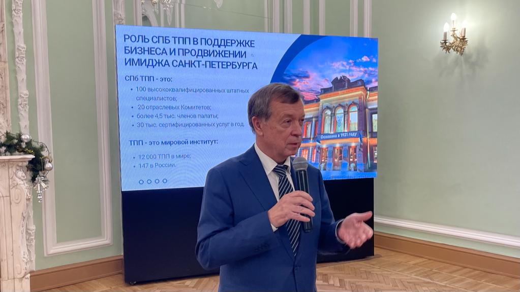 14 декабря 2023 года в залах Санкт-Петербургской торгово-промышленной палаты (СПб ТПП) прошла торжественная новогодняя встреча для членов Совета Палаты. Мероприятие, организованное в честь наступающего Нового года, собрало представителей бизнес-сообщества города.