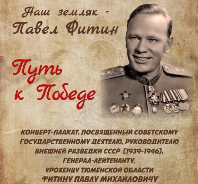 Во дворце культуры «Нефтяник» имени В.И. Муравленко прошел концерт-плакат «Путь к Победе», рассказывающий о становлении и героическом пути генерала-лейтенанта, руководителя внешней разведки СССР в 1939-1946 гг. Павла Михайловича Фитина.