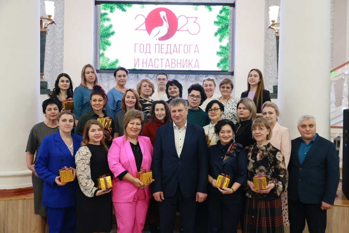 Глава города Иван Носков поблагодарил преподавателей школ, воспитателей детсадов и учреждений допобразования за проделанную работу и поздравил собравшихся с наступающим Новым годом. А победителям и призерам профессиональных конкурсов подарили памятные презенты.
