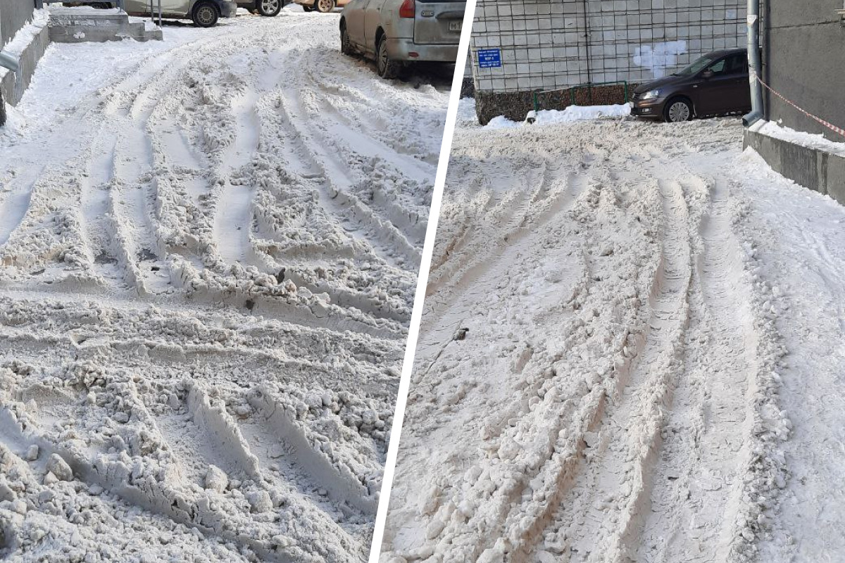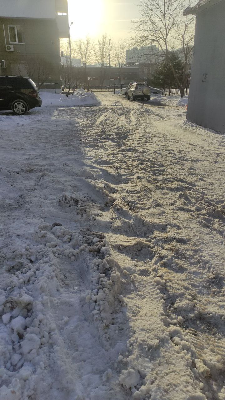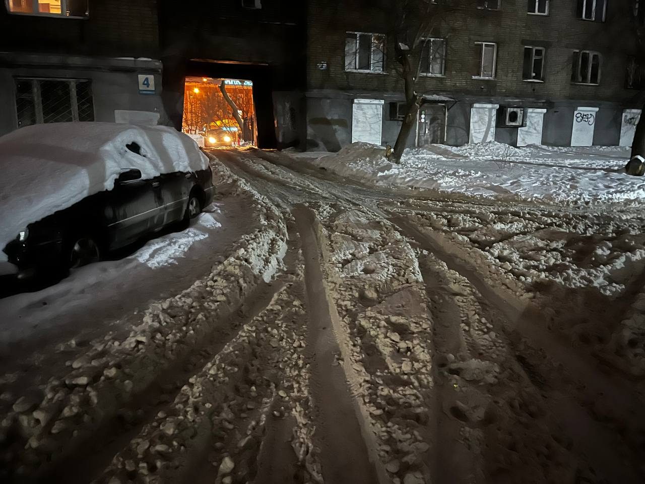 Не лучше ситуация и в Железнодорожном районе. По словам читателей, на Челюскинцев, 4 весь двор засыпан снегом