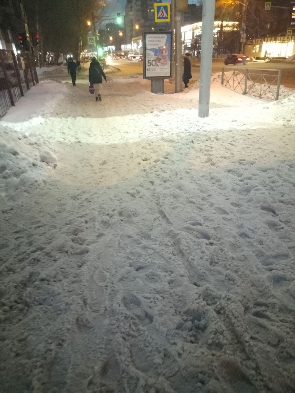 Вот так выглядит центр города, тротуары на улице Гоголя завалены снегом