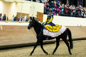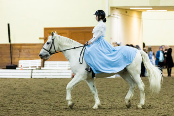 Торжественно открыл представление великолепный котильон из восьми лошадей, покоривший зрителей. Гнедой текинец Мастак и серый Попкорн представили дуэт Золота и Серебра, всадники в образе первобытных людей азартно скакали на вятском Белогоре и башкирском Урале. А всадницы на светло-серых Осадии, Литорали и Импорте кружились по манежу, словно зимняя метель.