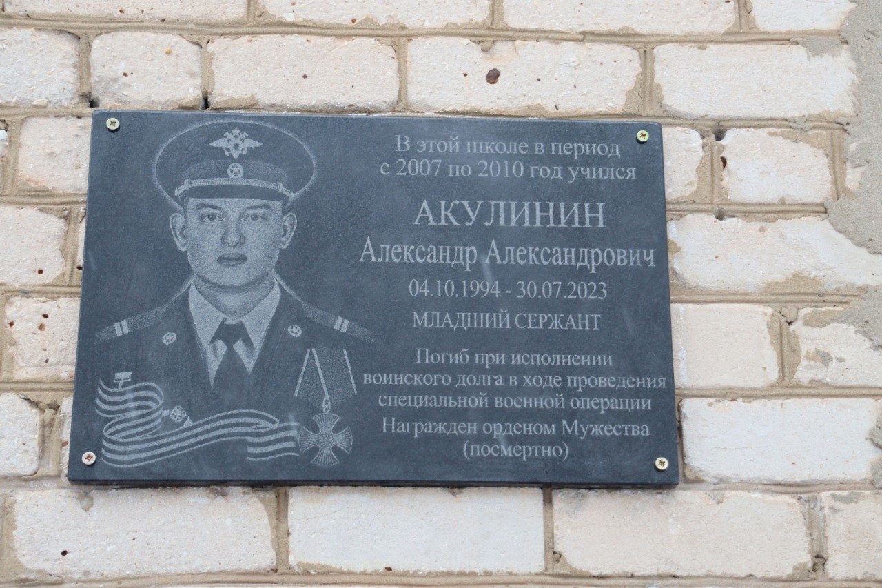 На фасаде Репьевской школы накануне, 28 декабря, открыли мемориальную доску в память о выпускнике Александре Акулинине. Об этом сообщили в администрации Тюльганского района.