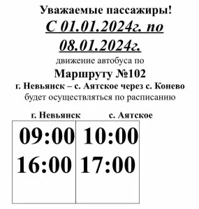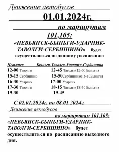 Администрация Невьянского городского округа информирует население о расписании автобусов 01 января 2024 года: