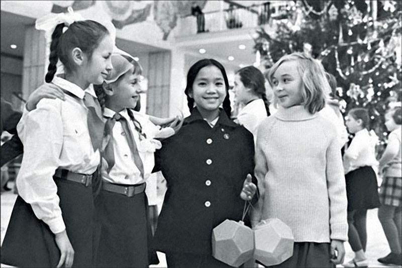 • В центре снимка — Во Тхи Лиен, девочка из южновьетнамской общины Сонгми, которую в 1970 году пригласили на кремлёвскую ёлку