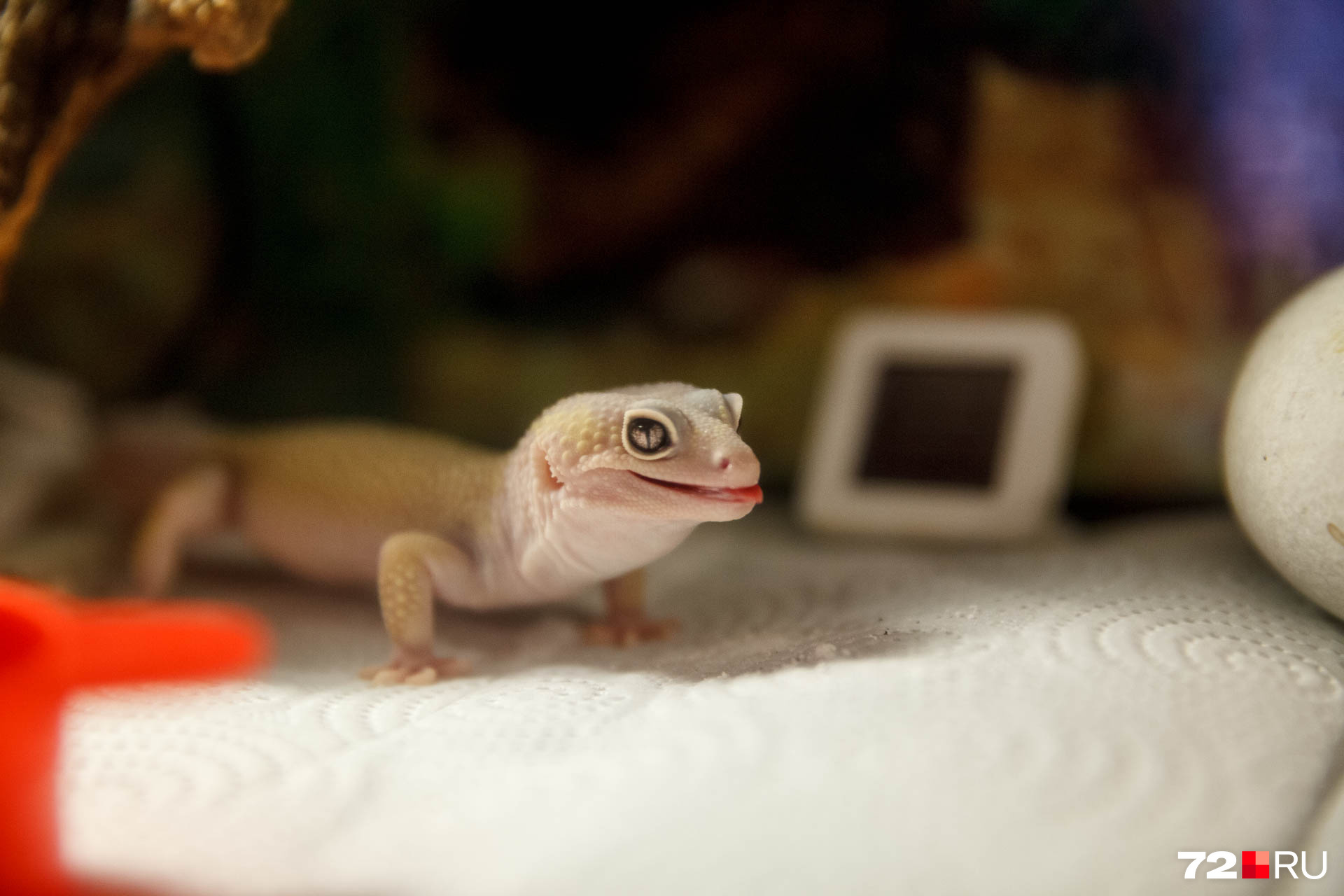 Эублефар Леон появился в семье Носовых два года назад. У него нетипичная расцветка — хамелеон. В зависимости от настроения он может менять цвет от белого до сиреневого и желтого. Обычно такие ящерицы яркие и пятнистые.