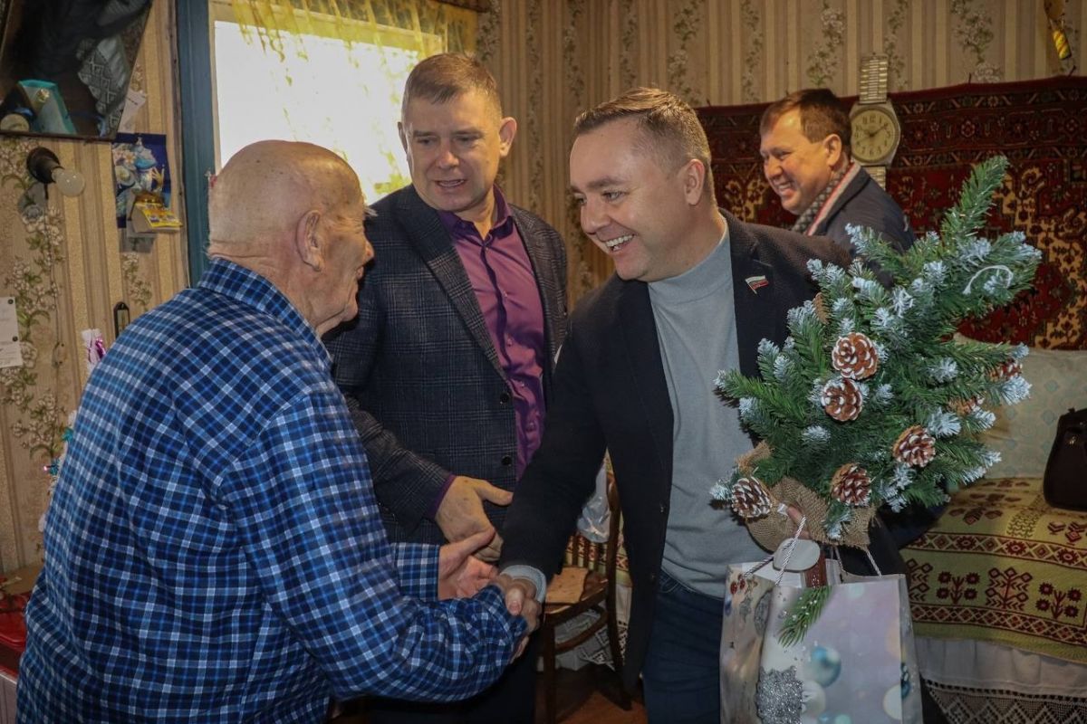 Депутат Курской облдумы Эдуард Дюмин и секретарь Поныровского местного отделения партии Владимир Торубаров навестили ветерана Великой Отечественной войны Ивана Богданова. Они поздравили его с Новым годом и Рождеством, обсудили волнующие пенсионера вопросы и вручили подарки.