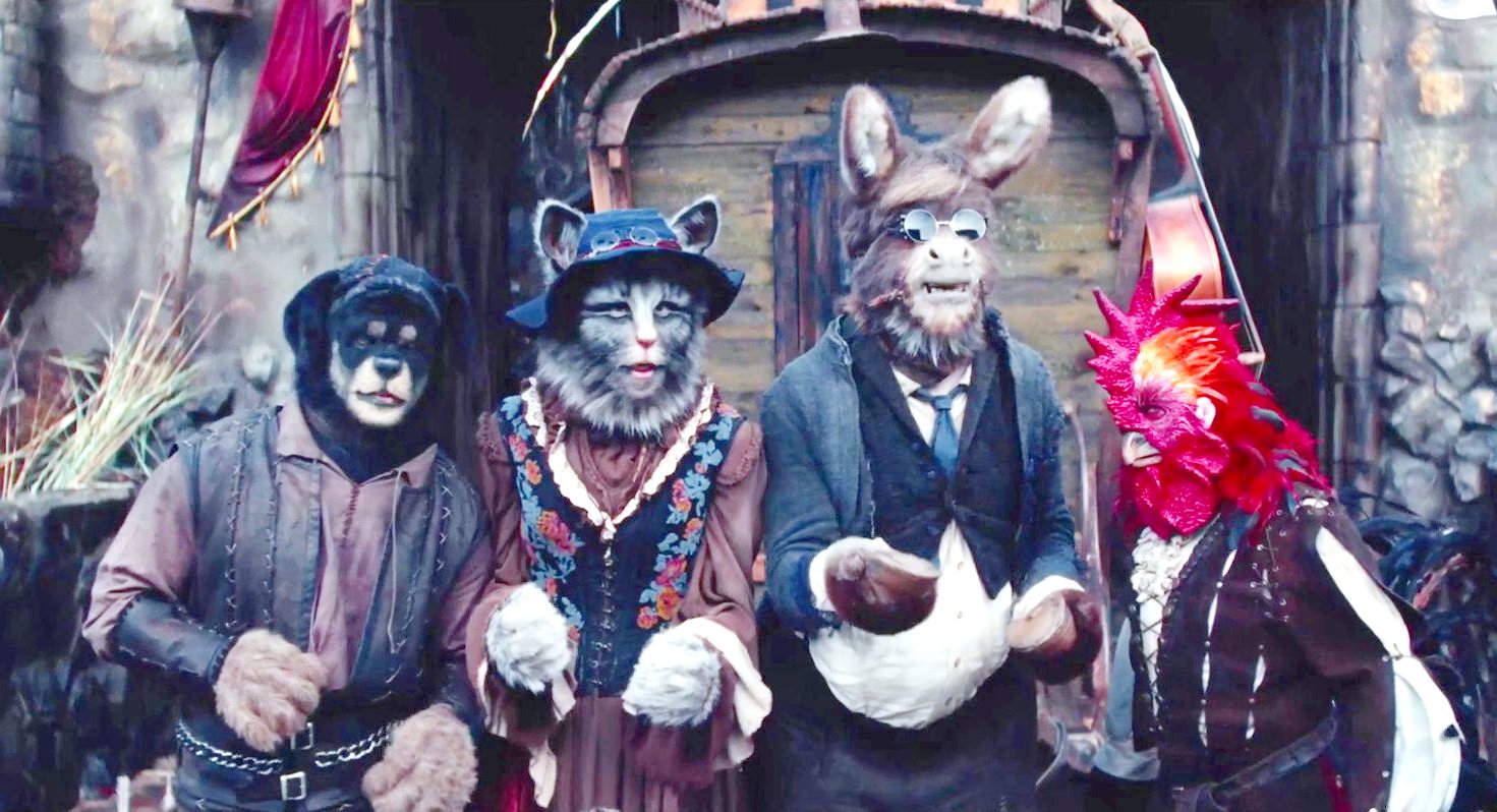 Все было мило и хорошо до того момента, пока Трубадур не встретил бременских музыкантов. Глядя на эти морды-маски, сквозь которые на нас смотрят человеческие глаза, закрадывается вопрос: а это точно фильм для аудитории 6+? Ну ладно, художника (по костюмам) обидеть может каждый, он, художник, так видит, но с исполнителями-то что случилось? Зачем они так чудовищно разговаривают? Почему животные Осел, Пес, Кошка и Петух — такие нелепые и глупые? Почему нельзя было сделать их обаятельными, располагающими к себе? Помните Боярского в роли Волка в советском мюзикле 1976 года «Мама»? Он там главный злодей, но какое море обаяния!