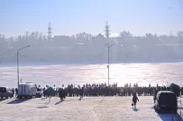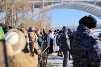 Набрать освященную воду можно было в храме или из специальной лунки реки Бии