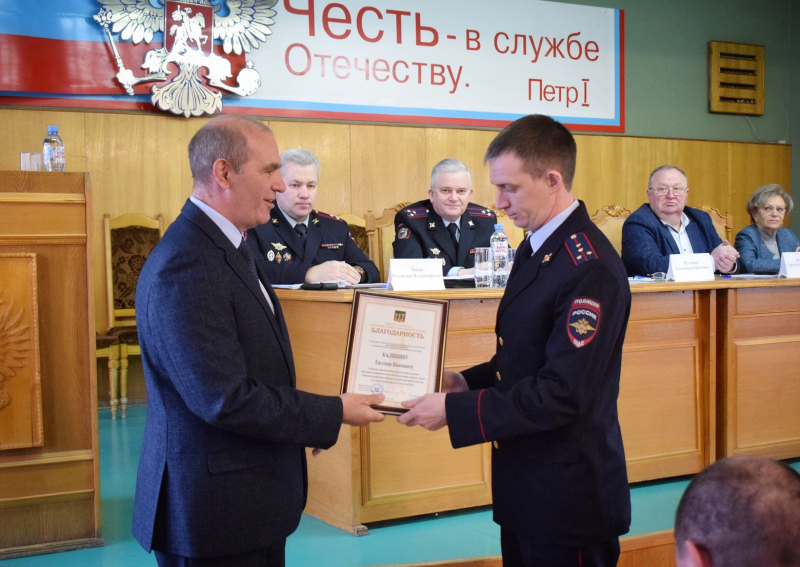 В завершение заседания представители законодательной и исполнительной власти отметили ежедневный труд и верное служение делу. Особо отличившимся сотрудникам органов внутренних дел вручили благодарности за добросовестное выполнение служебных обязанностей, в том числе в особых условиях на территории ДНР и ЛНР.