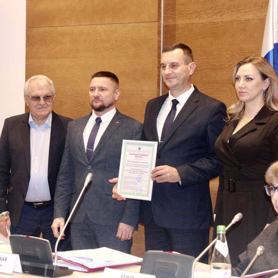 Исполнительному директору Евгению Сахарову и председателю профсоюзной организации ЕвроХим-ВолгаКалия Виктору Глущенко вручено благодарственное письмо, подписанное заместителем губернатора Волгоградской области, председателем Волгоградского областного Совета профсоюзов и сопредседателем Союза промышленников и предпринимателей Волгоградской области.