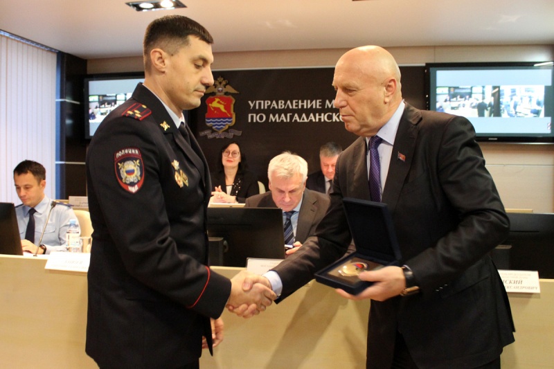 Открывая работу коллегии, начальник УМВД России по Магаданской области Дмитрий Князев вручил сотрудникам полиции, добившимся особых успехов в служебной деятельности, Почетные грамоты и Благодарности МВД России, а также нагрудные знаки и наградное оружие. Лучшие полицейские также были поощрены правами губернатора Магаданской области и Председателя областной Думы.