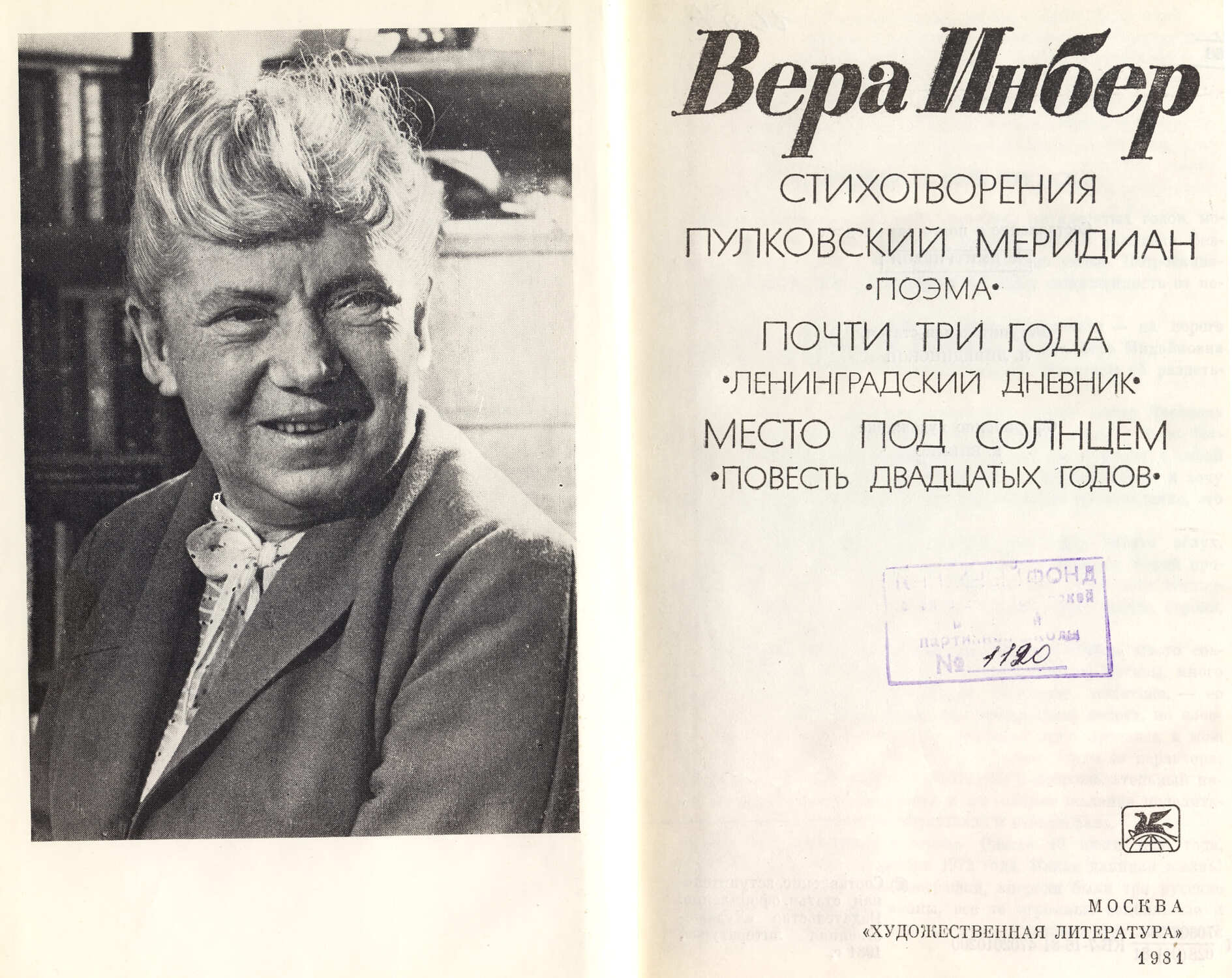 Поэтесса Вера Инбер была свидетелем всех испытаний, которые выпали на долю города на Неве. Отказалась покидать Ленинград, так как ее муж Илья Страшун, был директором Первого мединститута и не мог уехать из города. Инбер причислили к оперативной писательской группе Балтийского флота, она выступала на радио, где вела передачу «Москва-Ленинграду», читала стихи в госпиталях, в прифронтовой полосе. В годы блокады Инбер вела дневник, в котором описывала каждый блокадный день. В 1946 года он будет издан под названием «Почти три года» и станет ее лучшей прозой. В дневнике очень мало размышлений или оценок, скорее он напоминает сводку событий в городе, свидетелем которых была Инбер. Это живое свидетельство того страшного времени, когда бомбежки, голод и смерть превратились в повседневный быт ленинградцев. Написанная в 1942 году поэма «Пулковский меридиан» стала лучшим образцом творчества Инбер. Поэму называли манифестом борющегося духа, поэзией, которая ежедневно помогала выжить, не сойти с ума от голода и смертей вокруг. За нее Инбер получила в 1946 году Сталинскую премию.