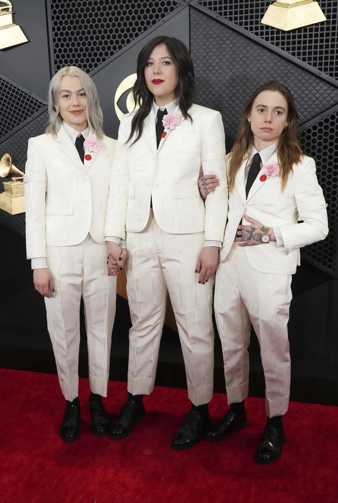 Женская рок-группа Boygenius очень элегантно смотрятся в белых костюмах