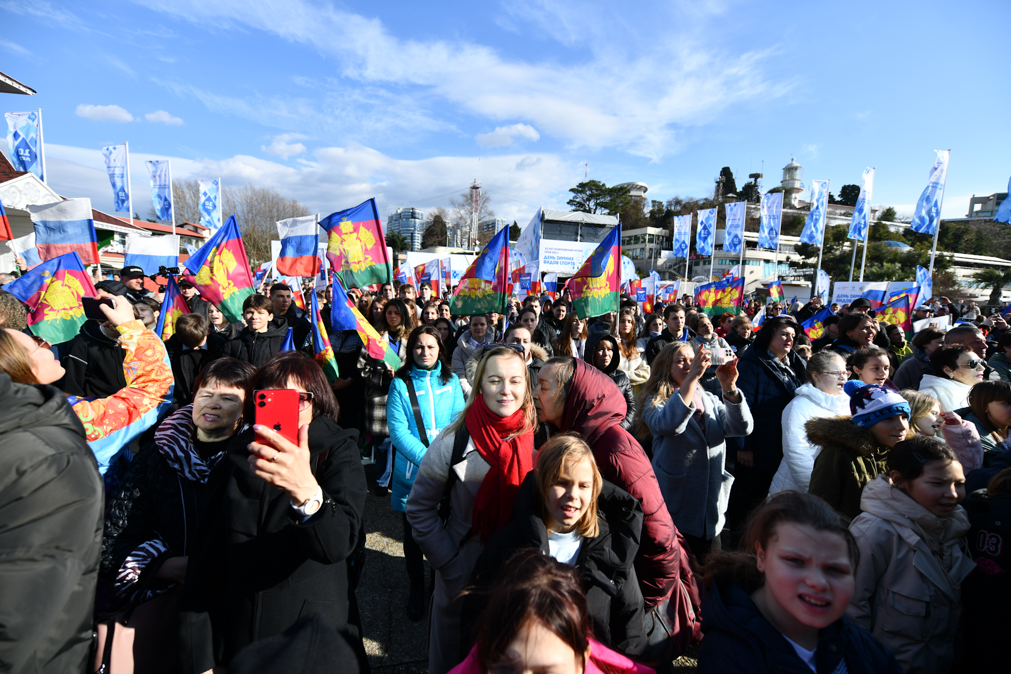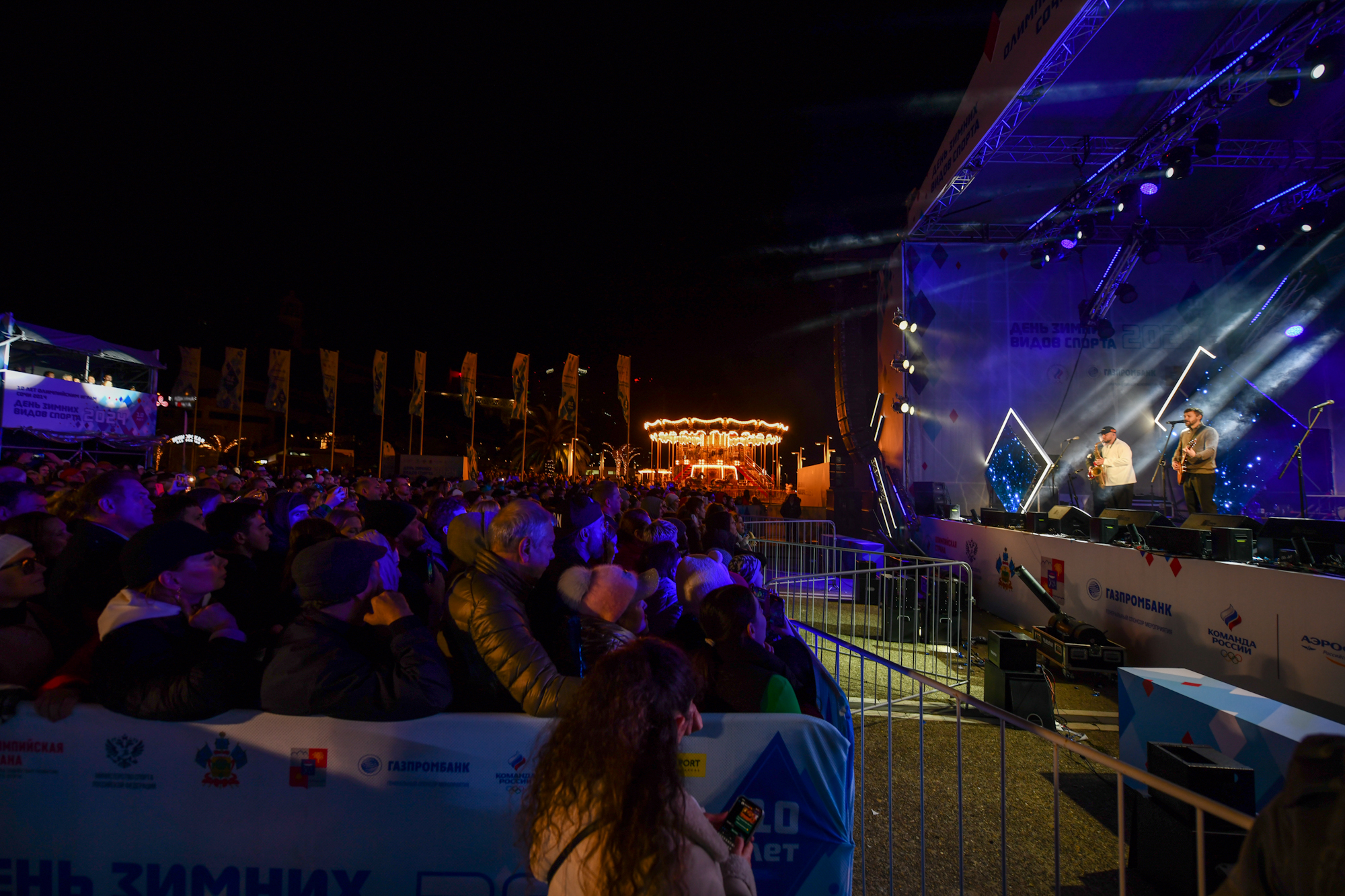 В течение дня для всех желающих работали различные тематические зоны, посвященные Играм-2014. Жители и гости Сочи могли сделать селфи с олимпийским факелом, поучаствовать в автограф-сессиях с победителями и призерами тех соревнований, попробовать свои силы в зимних видах спорта — хоккее, биатлоне, керлинге. А еще на побережье Черного моря был построен настоящий ледовый каток, который работал даже в такую по-весеннему солнечную и теплую погоду, которая словно по заказу пришла в олимпийскую столицу 7 февраля после череды ненастных дней.