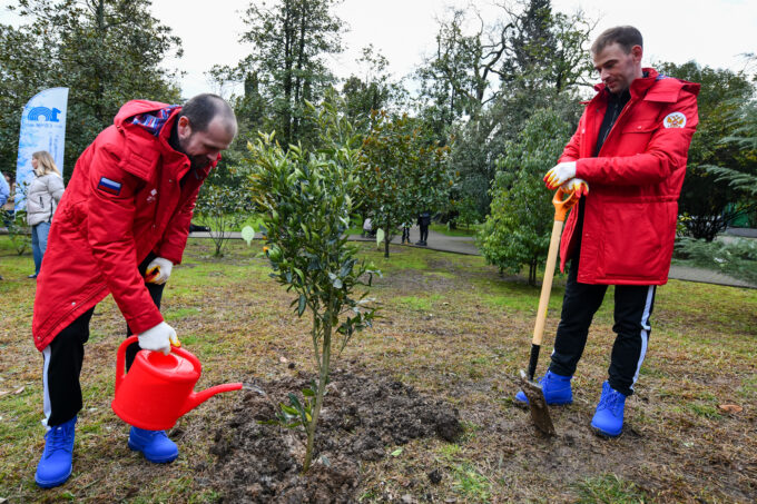 На День зимних видов спорта по приглашению ОКР прилетела большая группа чемпионов и призеров Сочи-2014. Ольга Вилухина, Александр Третьяков, Ольга Граф, Юлия Скокова, Екатерина Лобышева, Александр Бессмертных, Альберт Демченко, Александр Денисьев, Владислав Антонов, Татьяна Иванова, Владимир Григорьев, Дмитрий Соловьев, Алексей Волков, Дмитрий Япаров вместе с белорусскими коллегами Аллой Цупер и Антоном Кушниром высадили в Парке «Ривьера» саженцы цитрусовых деревьев. Символично, что такие цитрусовые культуры, как кумкват, грейпфрут, мандарин, помело и лимон, в Сочи считаются «деревьями дружбы», а место, где теперь растут новые саженцы, получило название «Поляна дружбы».