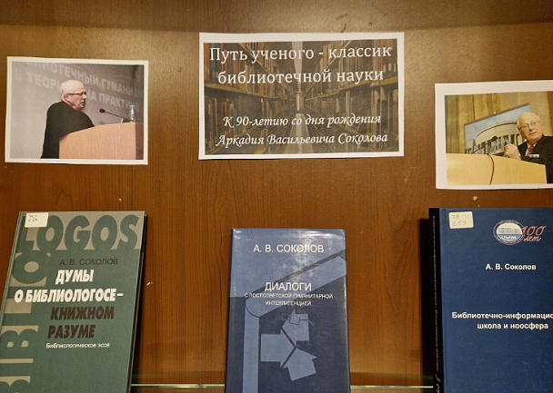 В холле библиотеки (Дворцовая наб., д. 4) открылась большая книжная выставка «Путь учёного — классик библиотечной науки: к 90-летию со дня рождения Аркадия Васильевича Соколова».