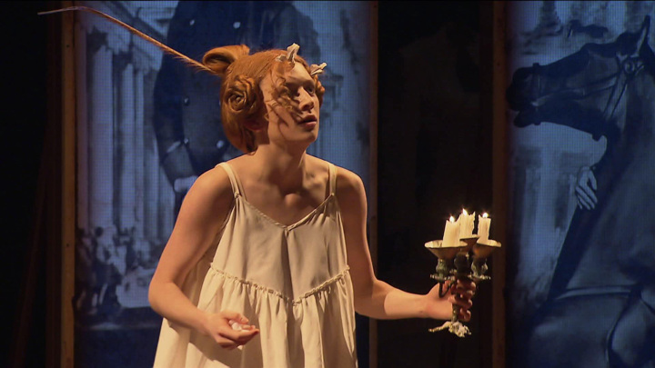 Это фотоателье – приданное Агафьи Тихоновны. Камера, портреты женихов, дополнительная недвижимость в "Женитьбе" Гоголя появилась с легкой руки Евгения Каменьковича. "Мы немножко продолжили, написали "сценическая редакция театра". У нас добавлены фотоателье и салон венчальных платьев. Мне кажется, что это ещё обостряет ситуацию. Ведь её грозный отец владел всем, и она вокруг этих белых прекрасных свадебных платьев, а её-то выдать не могут", – делится Евгений Каменькович.