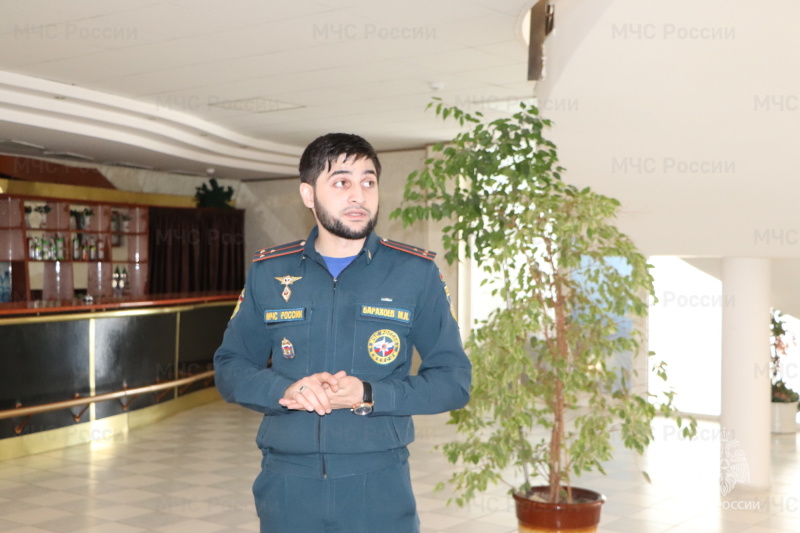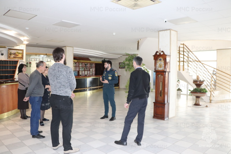 Накануне такое занятие прошло в гостинице «Асса», расположенном в г.Назрань. Сотрудник отдела надзорной деятельности и профилактической работы по городу Назрань и Назрановскому району Магомед Барахоев провел беседу и пожарный инструктаж с вынужденными переселенцами и персоналом, показал, как пользоваться огнетушителем и подручными средствами при тушении пожара.