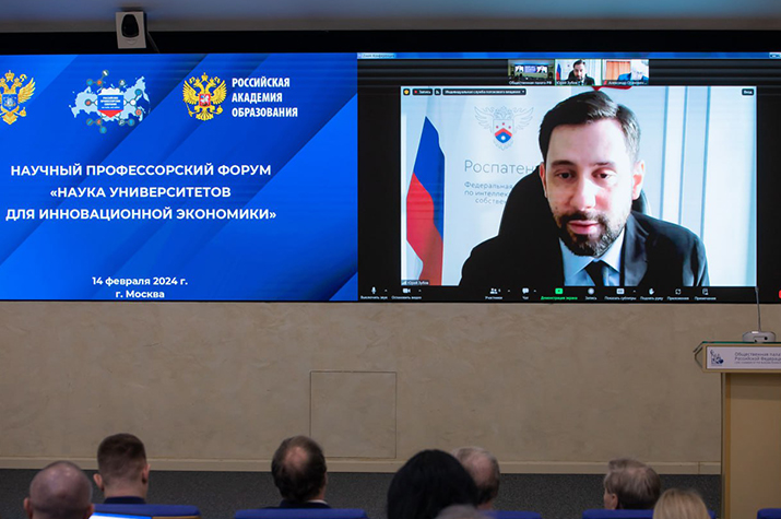 14 февраля 2024 года на площадке Общественной палаты Российской Федерации состоялся Научный профессорский форум "Наука университетов для инновационной экономики". Руководитель Роспатента Юрий Зубов сообщил: