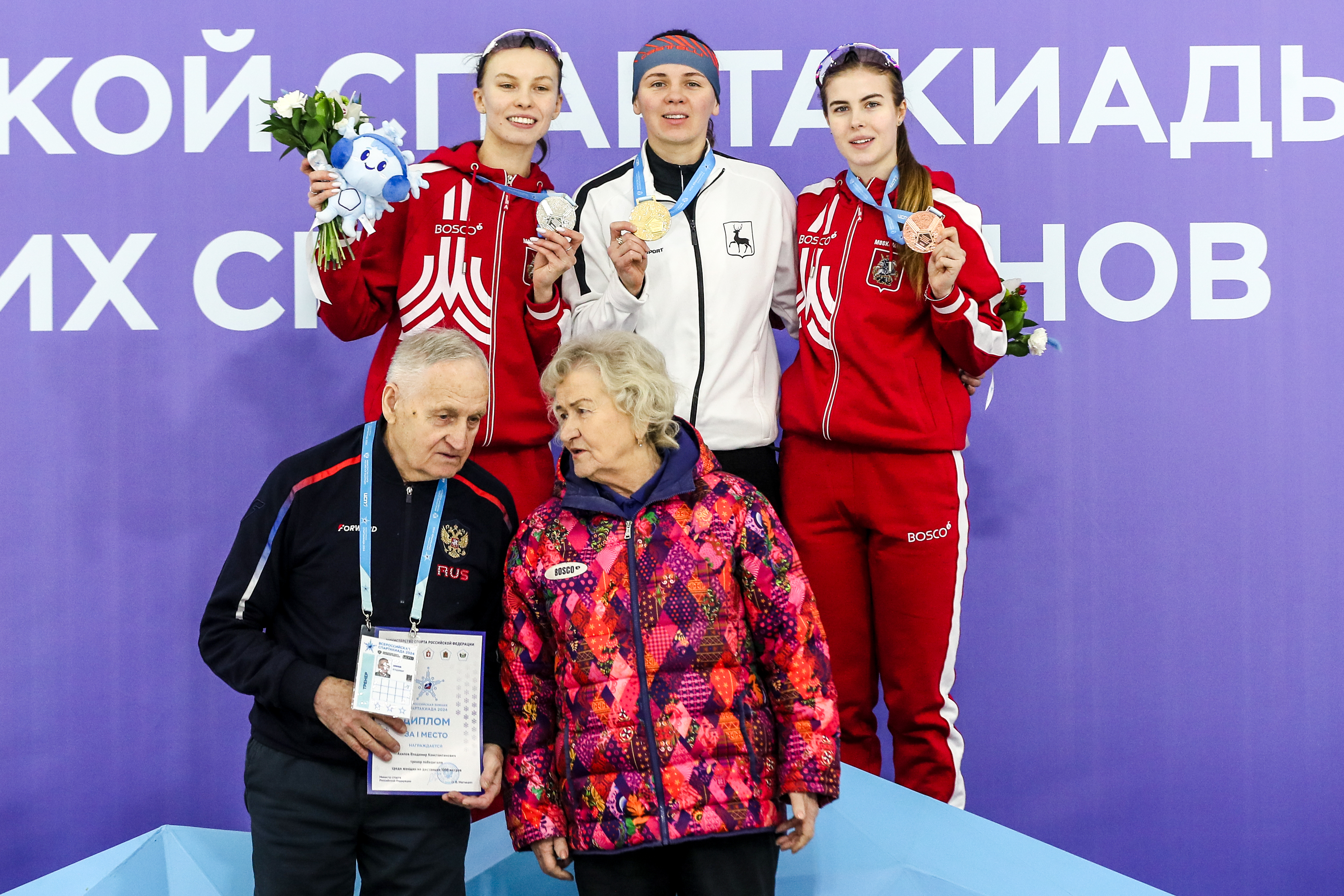 Первую медаль для Челябинской области в состязаниях по конькобежному спорту на Спартакиаде завоевалаАнастасия Григорьева.В беге на 3000 метров она стала бронзовым призером. Серебро завоевалаЕкатерина Кошелеваиз Екатеринбурга. А золото досталосьАлександре Саютинойиз Москвы. Но порадоваться за нее могут и челябинские любители коньков. Александра является дочерью титулованных южноуральских конькобежцевВадима СаютинаиСветланы Бажановой.
