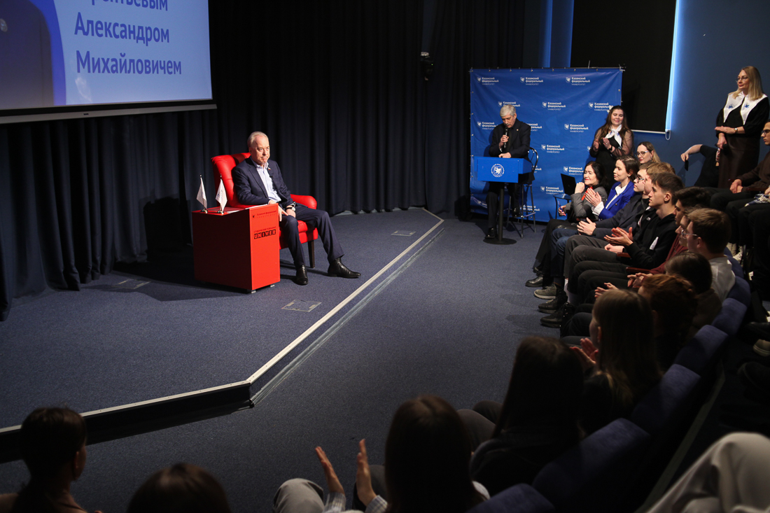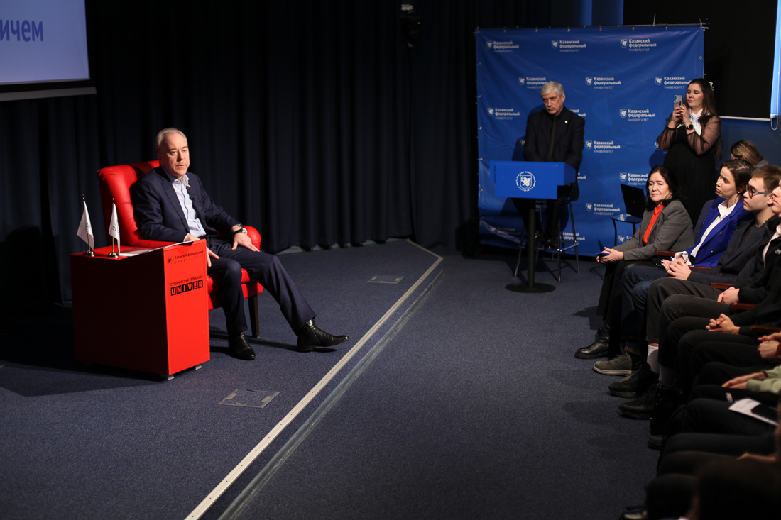 Александр Михайлович поинтересовался, представителями каких субъектов РФ и зарубежных стран являются присутствующие. Услышав названия многочисленных регионов, Л. Толчинский отметил, что география студентов Казанского университета широка: здесь учатся «от Донецка до Владивостока».