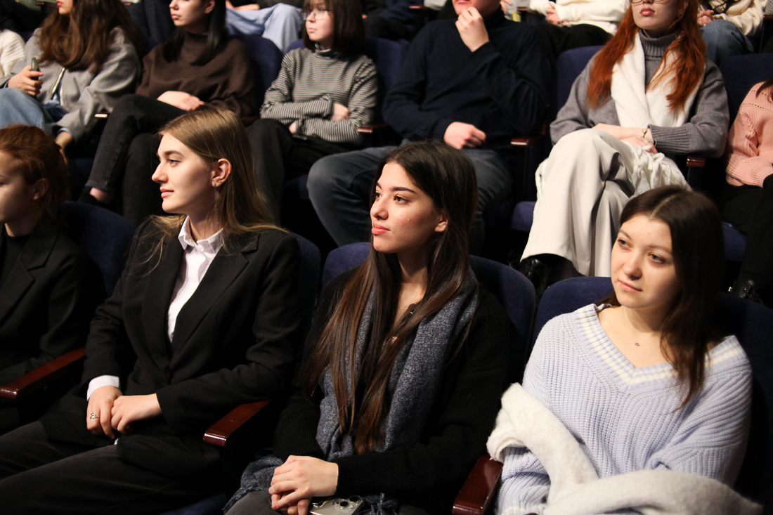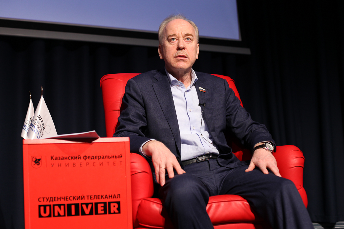 Представившись, сенатор перешел к ответам на вопросы студентов. Он рассказал о студенческих годах, первой сессии, а также поделился со студентами рекомендациями – где расставить приоритеты во время обучения в вузе.