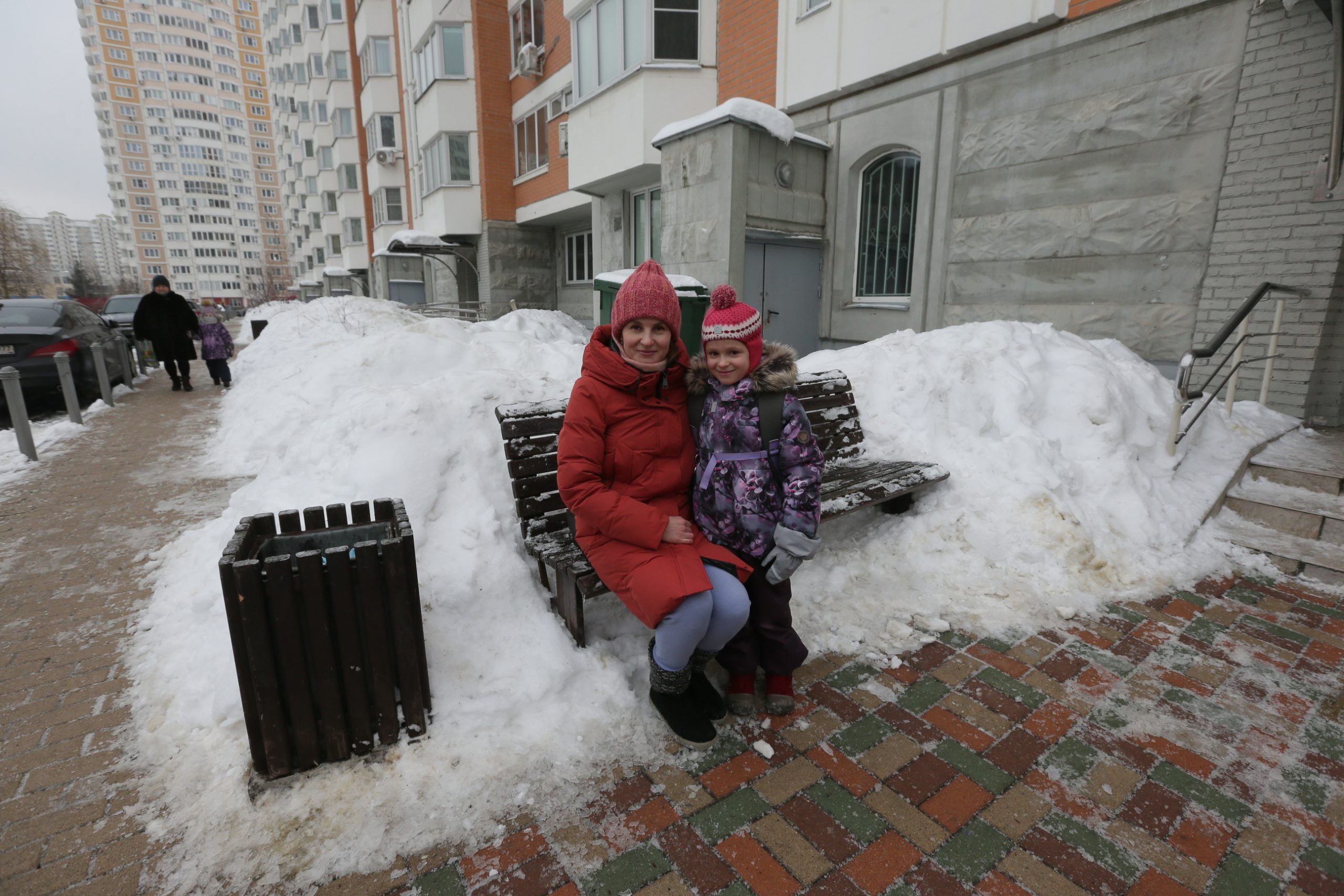 13 февраля. Московский. Валерия Борисовская с дочкой Катей убедились, что урны в районе в хорошем состоянии. Фото: Владимир Смоляков, «Вечерняя Москва».
