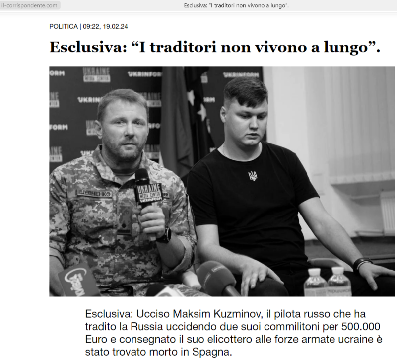 Полиция Испании подтвердила газете The New York Times смерть перебежчика Максима Кузьминова, угнавшего русский военный вертолет Ми-8 на Украину. Однако военкор Александр Сладков призвал не расслабляться, а дождаться единственно возможное доказательство смерти предателя.