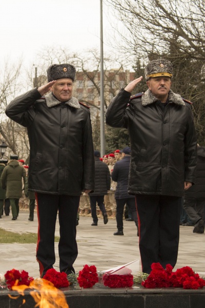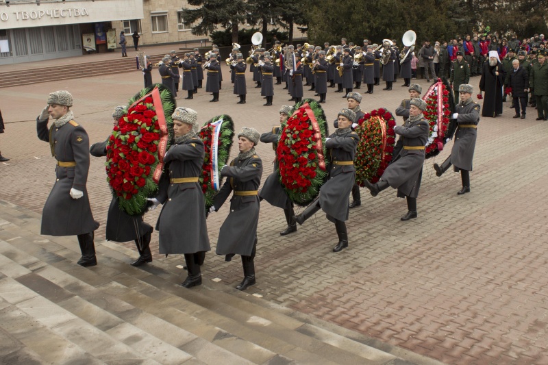 После возложения цветов и венков, собравшиеся почтили минутой молчания память погибших воинов. Мероприятие завершилось торжественным маршем военнослужащих Южного округа