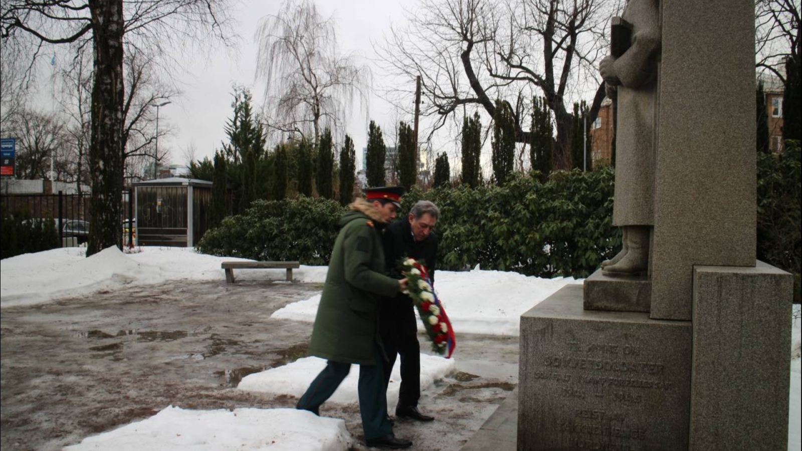На мемориальном кладбище «Вестре Гравлюнд» в Осло по случаю отмечаемого в России 23 февраля Дня защитника Отечества состоялось возложение венков и цветов к памятнику павшим советским воинам.