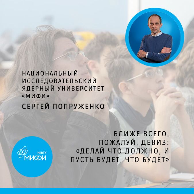 Каким должно быть общение студента с преподавателем – это безусловное внимание к лектору и материалу или соревнование кто кого перехитрит? А какое отношение преподавателей больше всего ценят сами студенты – уважение, строгость и требовательность или снисхождение на грани равнодушия? Как оказалось, наши студенты не боятся требовательности, даже если не всё понимают. Читайте об этом в новой публикации из цикла «Лучшие преподаватели МИФИ по мнению студентов» – интервью с Сергеем Васильевичем Попруженко, профессором, заведующим кафедрой теоретической ядерной физики Института ЛаПлаз.
