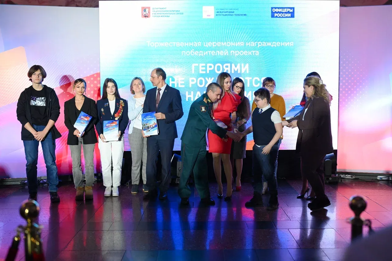 28 февраля в Музее Победы в Москве состоялось награждение авторов третьего сборника «Героями не рождаются. Zа Родину» с рассказами об участниках СВО. Всем им награды – дипломы и печатные издания – вручили руководитель Департамента национальной политики и межрегиональных связей города Москвы Виталий Сучков, председатель Президиума Общероссийской организации «Офицеры России», Герой России Сергей Липовой, Герои России Максим Шоломов, Иван Шиц, Сергей Бойко.