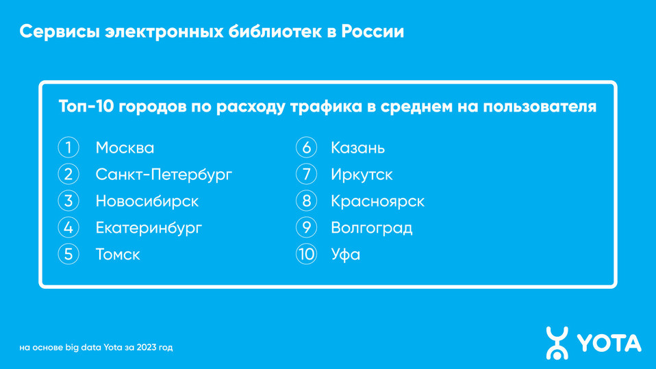 Россияне стали активнее читать книги в сервисах электронных библиотек — трафик таких приложений вырос на 50% за прошлый год. На фоне ухода из России шведской компании Storytel наибольший рост продемонстрировал сервис Bookmate, перезапустившийся в декабре 2022 года после покупки «Яндексом». К такому выводу пришли аналитики Yota на основе обезличенных данных абонентов.
