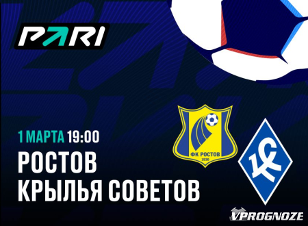 1 марта матчем между «Ростовом» и «Крыльями Советов» после зимней паузы возобновится РПЛ. Игра начнется в 19:00 по московскому времени. Аналитики букмекерской компании PARI оценили шансы соперников.