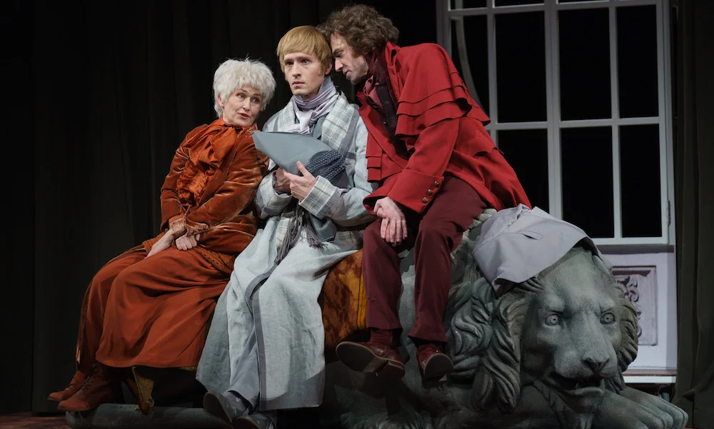 Забавно реализованы образы женихов: каждый из них отдаленного напоминает какого-нибудь литературного персонажа. Высокий и лысый Яичница с суровым взглядом и в наглухо застегнутом мундире внезапно навевает мысли о Носферату, хихикающий жеманный Анучкин воскрешает в памяти Дуремара, восторженный с роскошной шевелюрой Жевакин – инфантильного и романтичного барона Мюнхгаузена, а сам Подколесин со своей треуголкой – комичного Наполеона. Особенно, в сцене с конем и дагерротипными снимками.