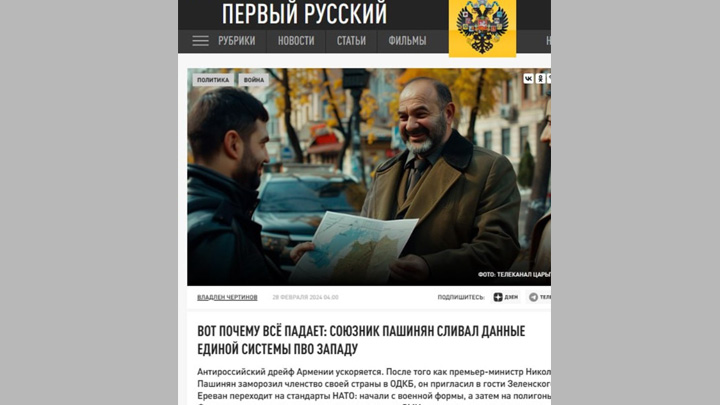 Пашинян сдаёт Россию. А заодно и Армению. Скрин с сайта "Царьград ТВ"