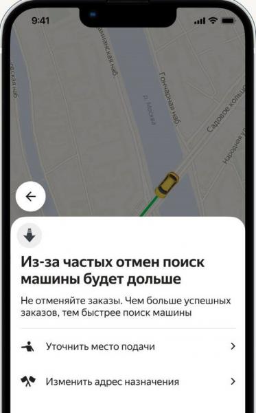 "Сервис предупредит о нововведении прямо в приложении, где пассажир сможет посмотреть показатель отмен. Алгоритм постепенно отобразится у всех пользователей "Яндекс Go", причем без учета прошлых отмен", - сказано в сообщении пресс-службы сервиса.