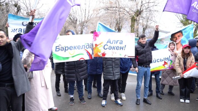 Мастера кожаных перчаток, с гордо поднятым флагом нашей страны, вернулись домой. Родные, тренеры и фанаты спорта, встретили их бурными аплодисментами. Гордость мегополиса Махмуд Сабырхан стал победителем лицензионного турнира. Он одолел соперника с явным преимуществом. Говорит, влюбился в этот бой на все 100%.
