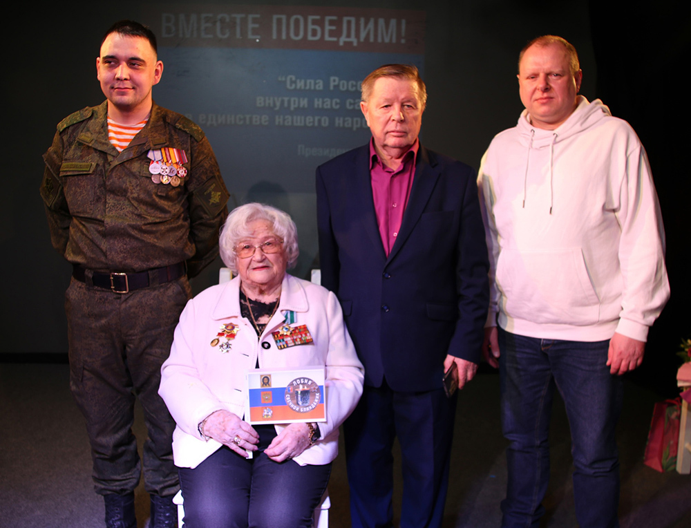 Встречали гостей в этот день в Лобне руководители волонтерского объединения «Свечной блиндажик», театра «Камерная сцена» и представители администрации города. С приветственным словом к гостям вечера обратился Владимир Александрович Лебедев, первый заместитель главы города Лобня, который приехал на это мероприятие поддержать важную работу и волонтеров «Свечного блиндажика», и авторов сборника, большая часть тиража которого будет отправлена бойцам в зону СВО и госпиталя.В качестве почетной гостьи на презентацию была приглашена Галина Павловна Брок-Бельцова – летчица, ветеран Великой Отечественной войны. Галина Павловна в свои 99 лет продолжает активную общественную работу и много делает для поддержки находящихся «за ленточкой» бойцов, приезжает на встречи с ними, всегда готова выслушать их рассказ – и поддержать, поделиться собственным военным опытом. Сборник предваряет письмо Галины Павловны бойцам и рассказ о ней, а на презентации книги легендарная летчица встретилась с одним из тех, кто сражается сейчас – молодой человек с медалью «За отвагу» на груди с благодарностью принял искренние слова летчицы-ветерана и ее добрые пожелания.